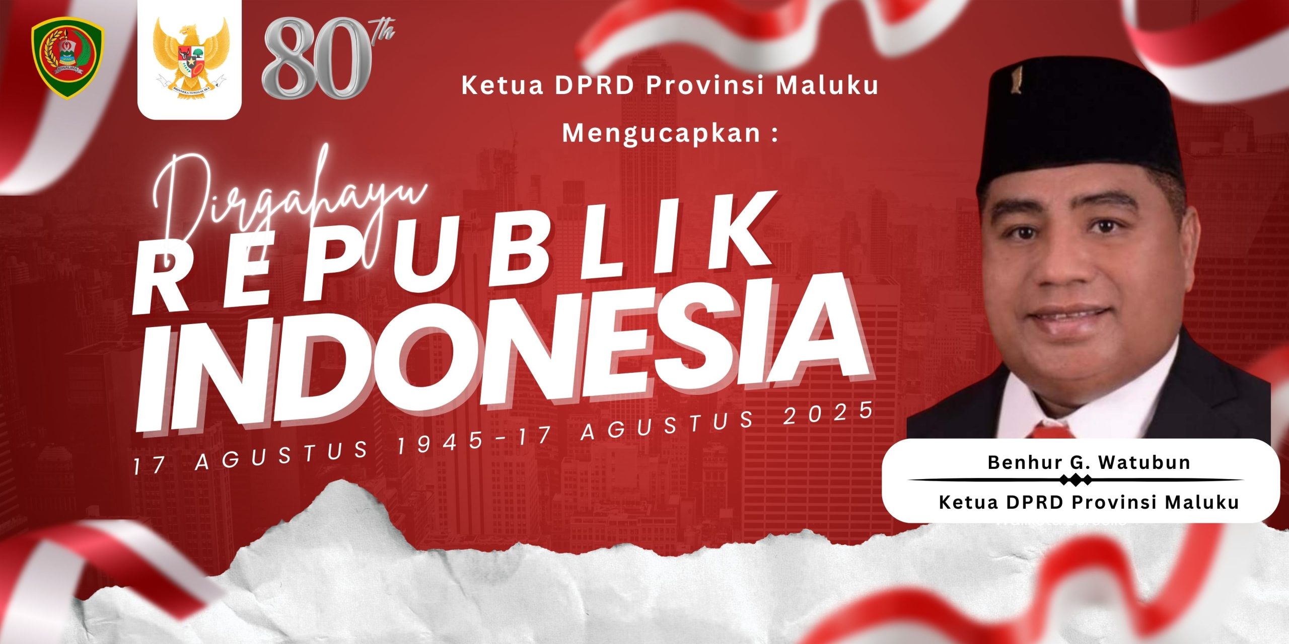 KETUA DPRD PROVINSI MALUKU MENGUCAPKAN SELAMAT ULANG TAHUN REPUBLIK INDONESIA YANG KE-80 fikareginalAgustus 17, 2025September 12, 20251336 Dilihat Post Views: 1,336 Pos terkaitKETUA DPRD PROVINSI MALUKU MENGUCAPKAN SELAMAT ULANG TAHUN GEREJA PROTESTAN MALUKUKETUA DPRD PROVINSI MALUKU MENGUCAPKAN SELAMAT ULANG TAHUN KOTA AMBON YANG KE-420KETUA DPRD PROVINSI MALUKU MENGUCAPKAN SELAMAT ULANG TAHUN PROVINSI MALUKU YANG KE-80Ketua DPRD Provinsi Maluku berserta Semua Anggota Mengucapkan Selamat Hari Raya Idul AdhaKetua DPRD Provinsi Maluku Mengucapkan Selamat atas dilantiknya Bupati dan wakil Bupati Kabupaten BuruKetua DPRD Provinsi Maluku Mengucapkan Selamat Hari Pendidikan Nasional